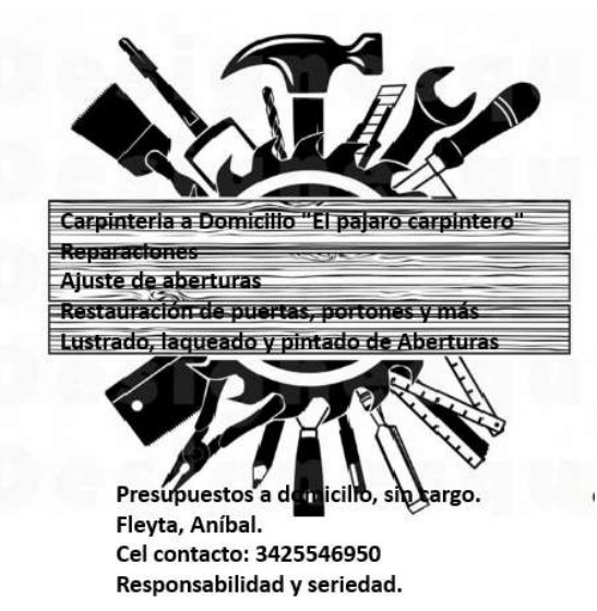 Se realizan tareas de Carpinteria en general: Reparaciòn y restauración de aberturas, ajuste de puertas/portones,etc. pintado y Lustrado – recupero de aberturas-. Presupuestos sin cargo. Seriedad y responsabilidad. 20 años de experiencia en el rubro.